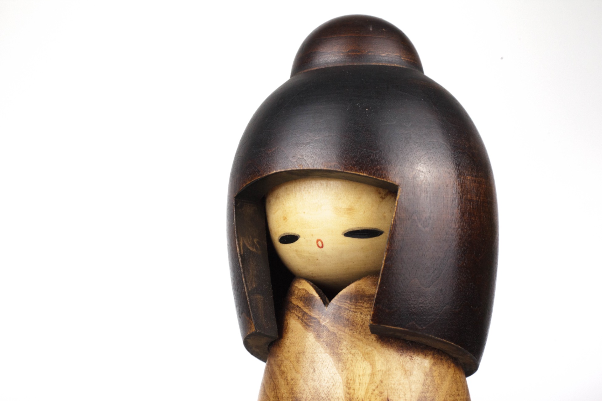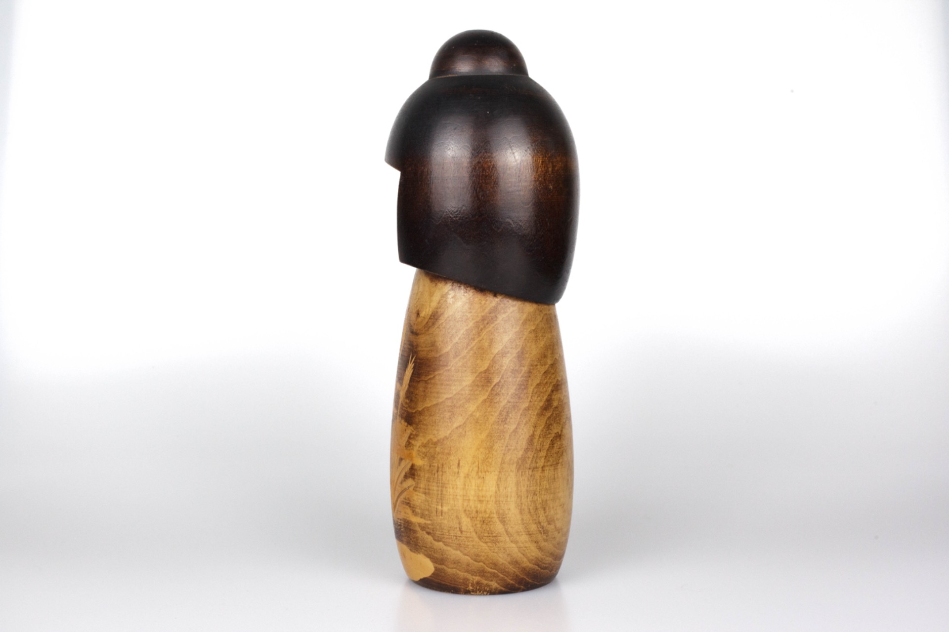 Het gelaat is expressief maar stil, met die klassieke ingetogenheid die zo typerend is voor de creatieve Kokeshi-stroming: vorm en gevoel, zonder afleiding.