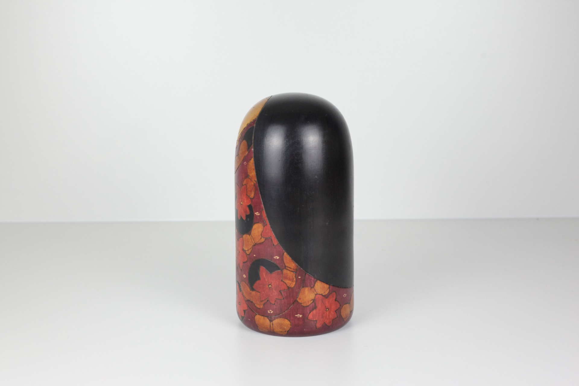 Door zijn formaat, gewicht en de rijke beschildering behoort dit stuk tot de meer uitgesproken werken binnen de sōsaku Kokeshi. Het voelt minder als een decoratief object en meer als een klein kunstwerk dat je bewust een plaats geeft.