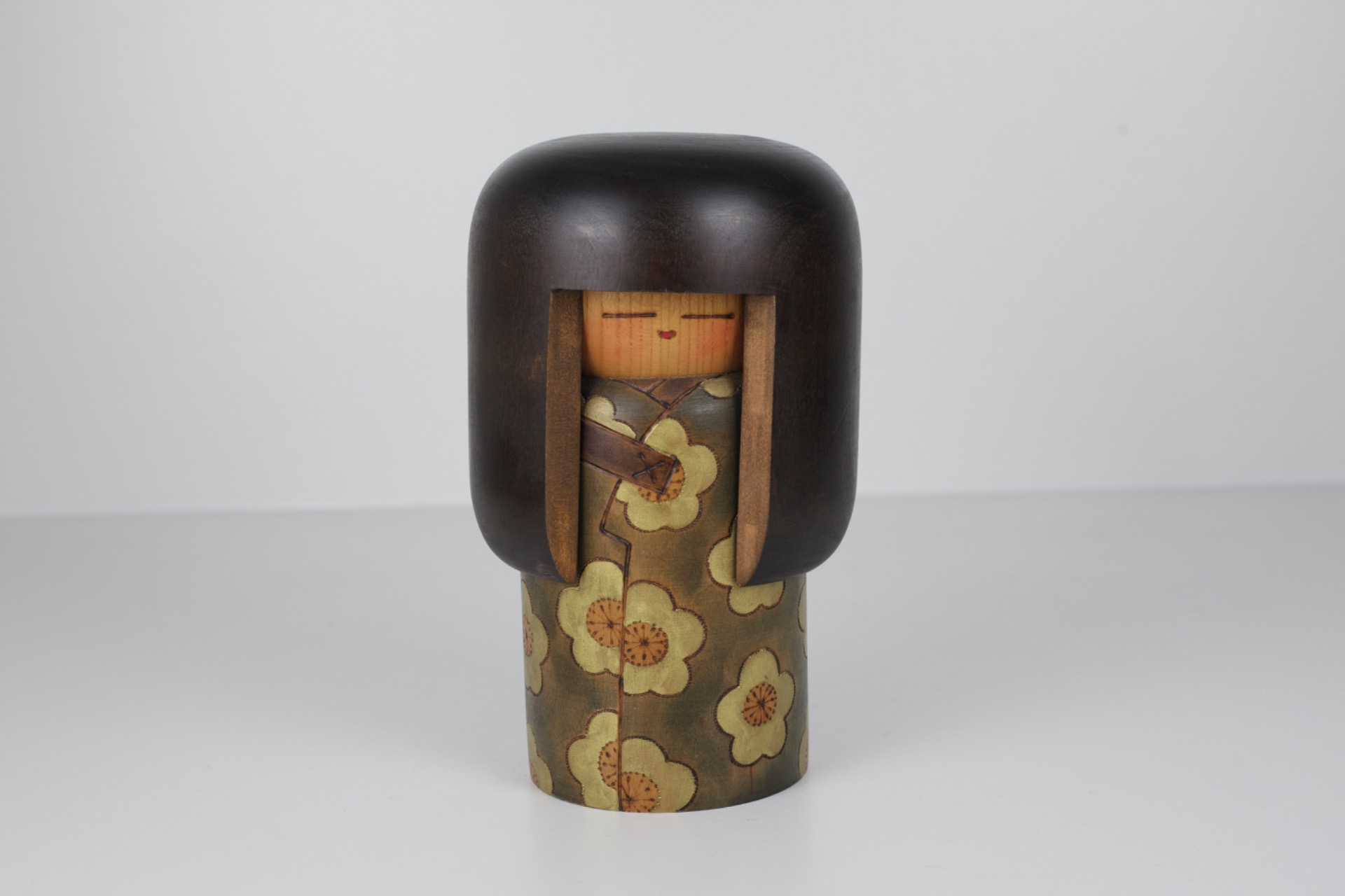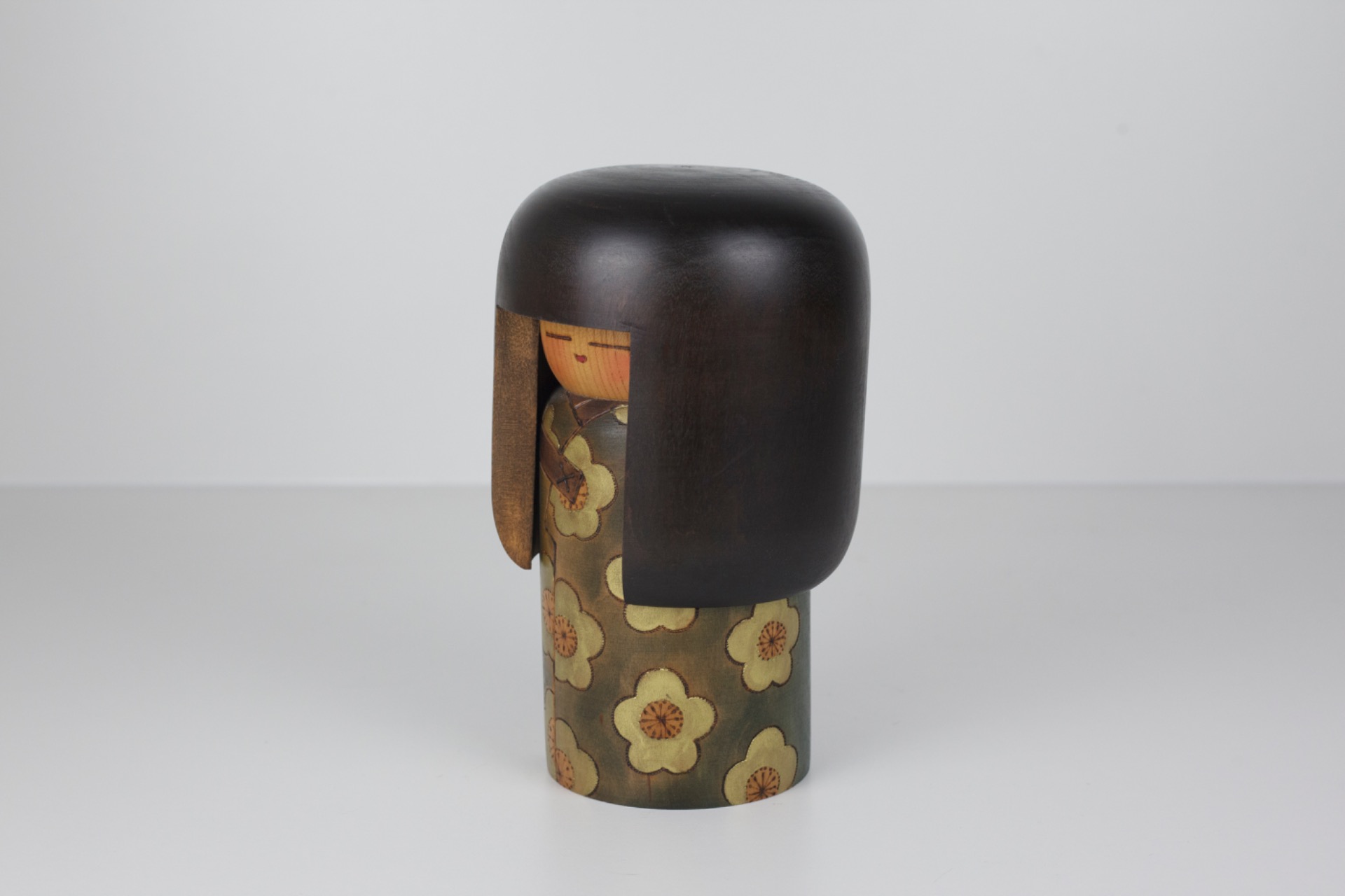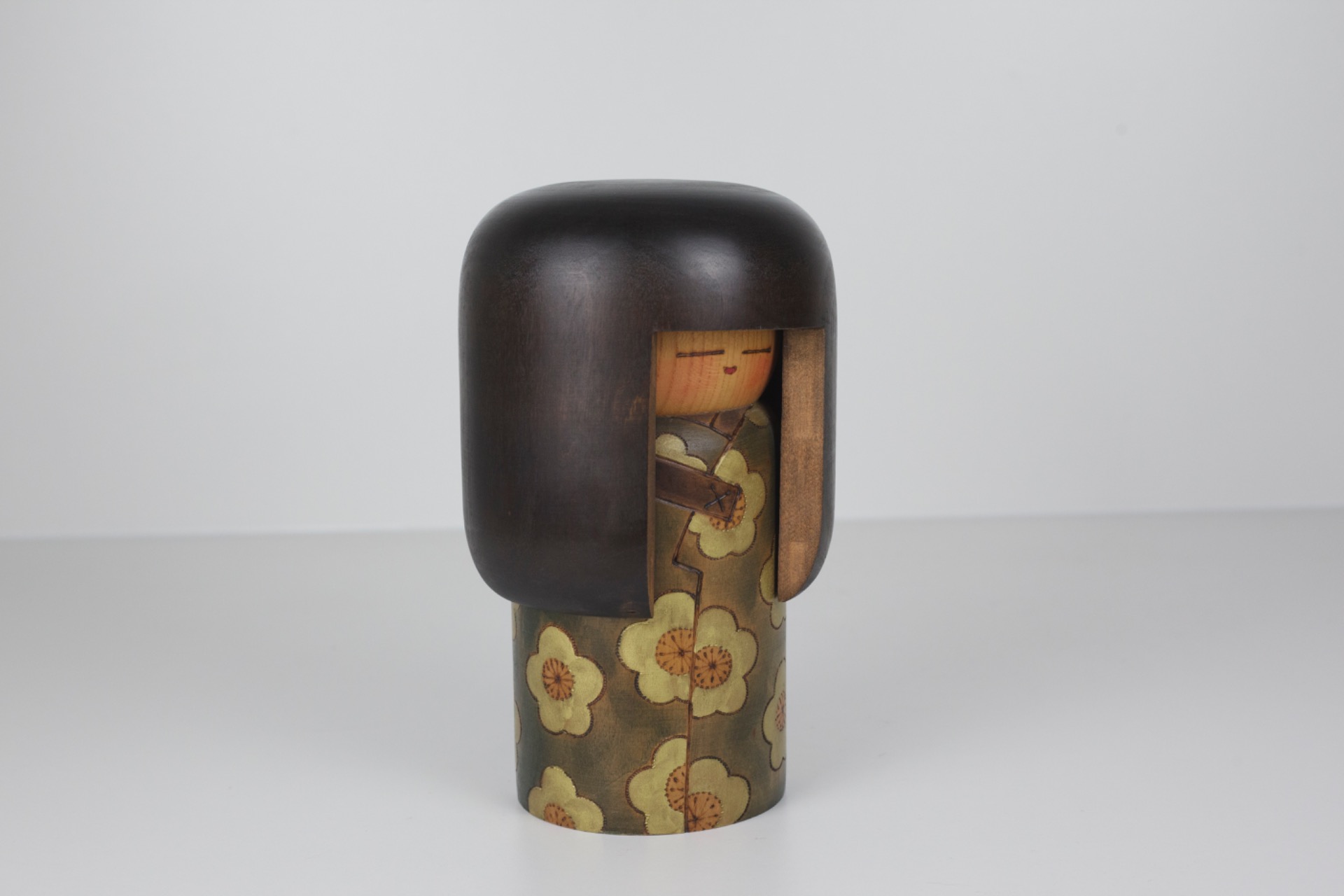 Door haar formaat en gewicht voelt dit stuk bijzonder solide aan. Een kokeshi met karakter, die zowel als decoratief object als verzamelstuk sterk staat.