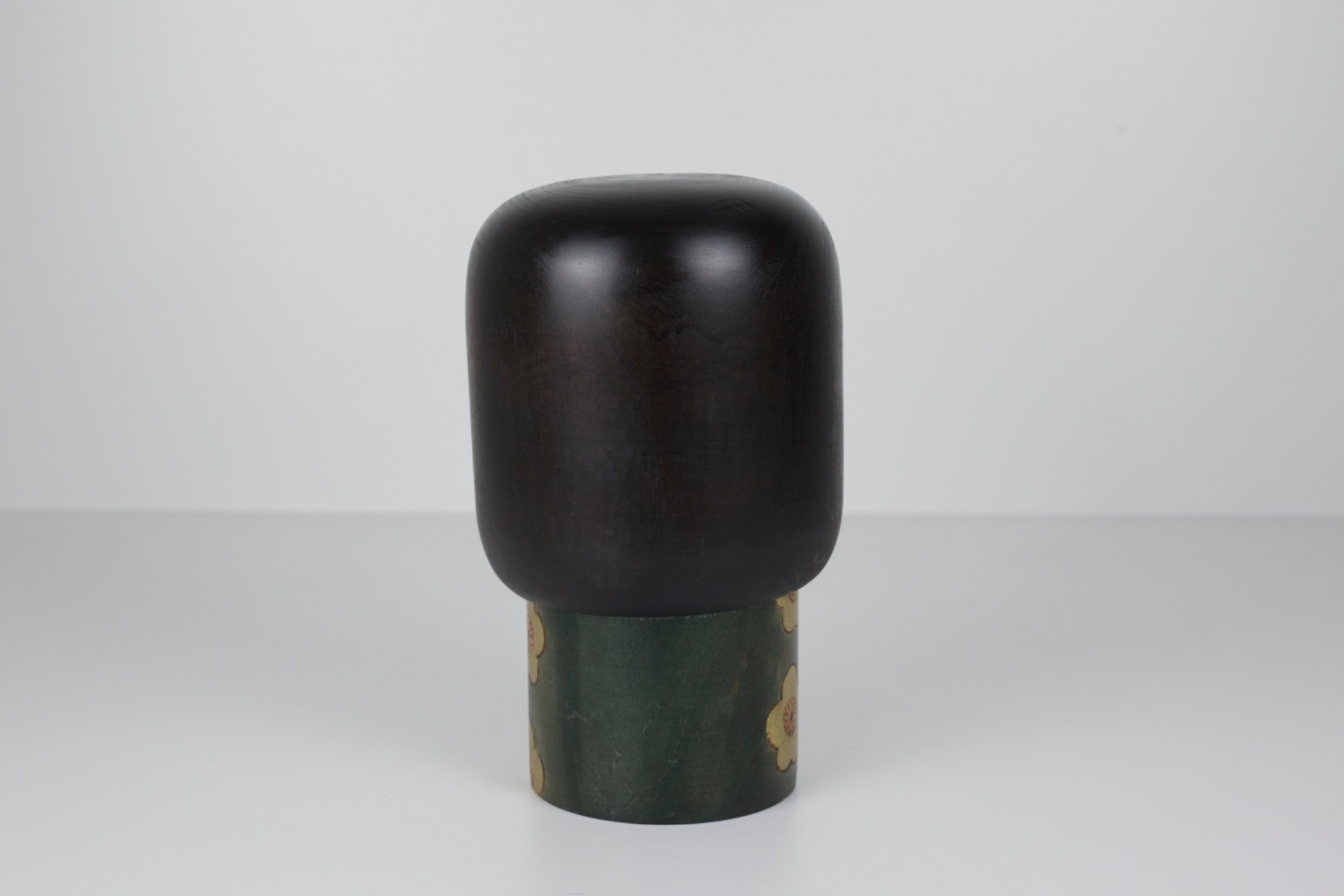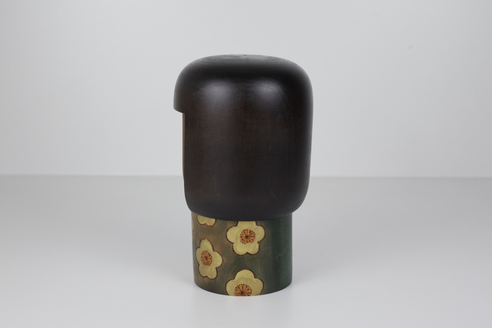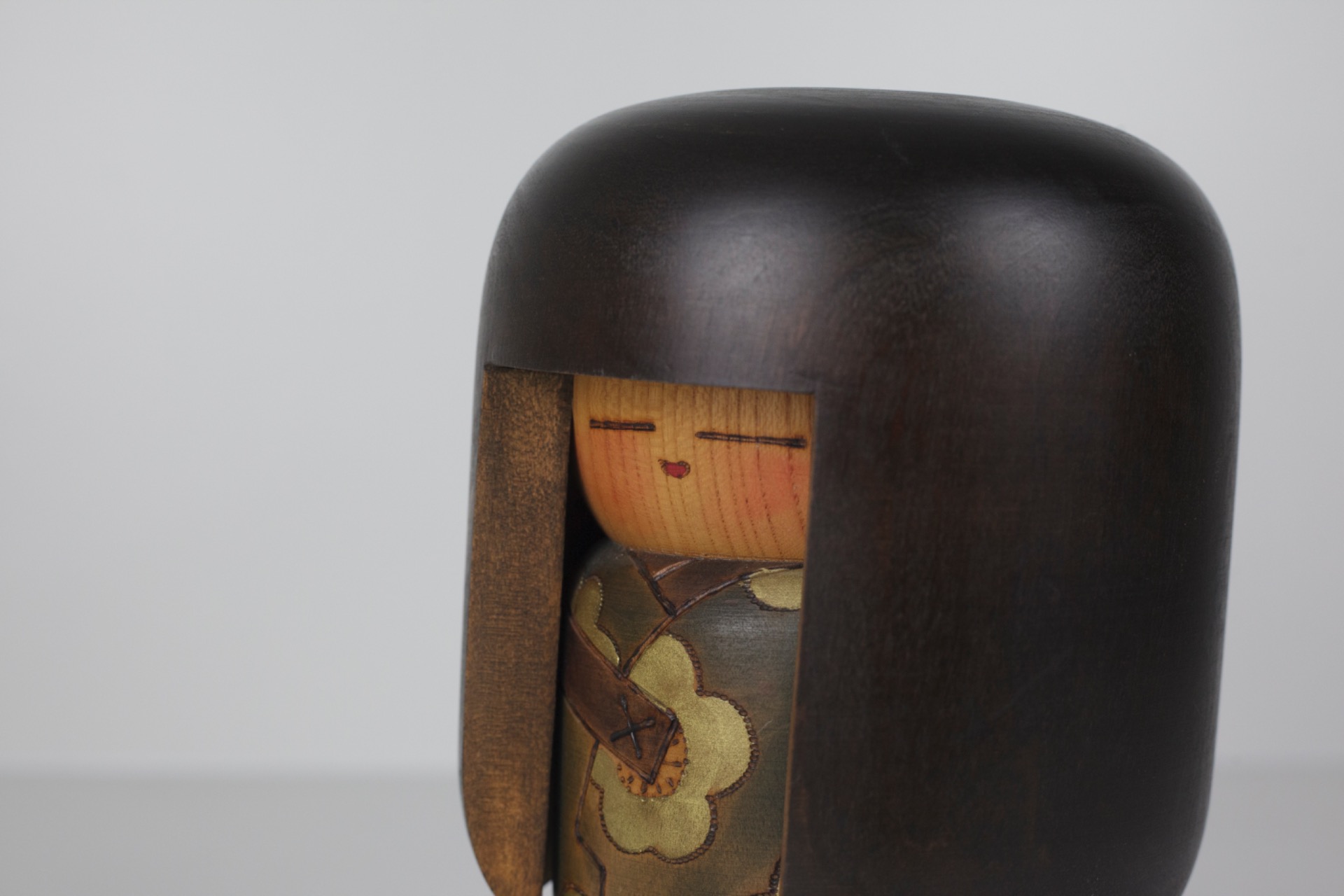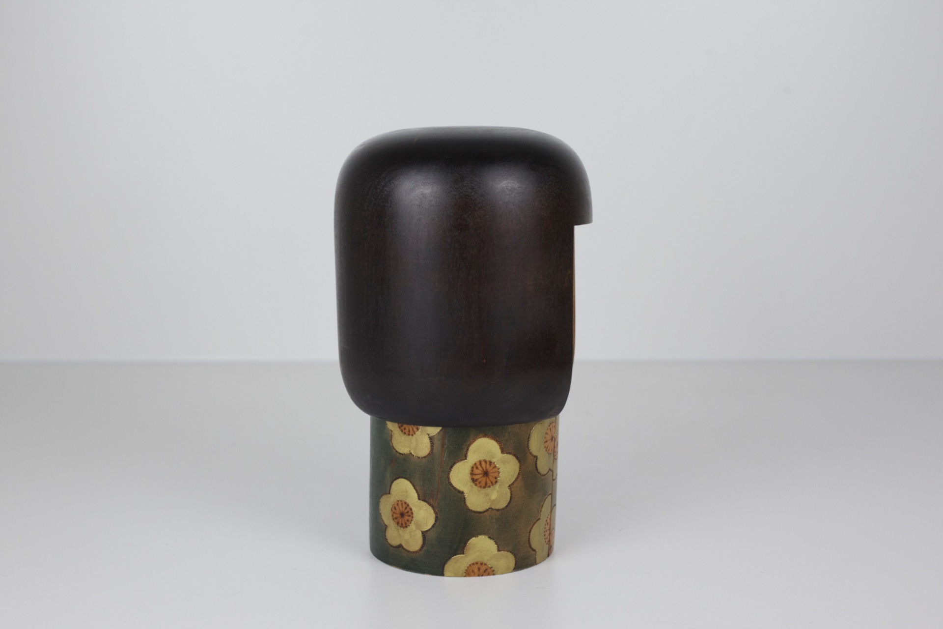Een krachtige en rustige kokeshi die meteen opvalt door haar eenvoud en vorm.