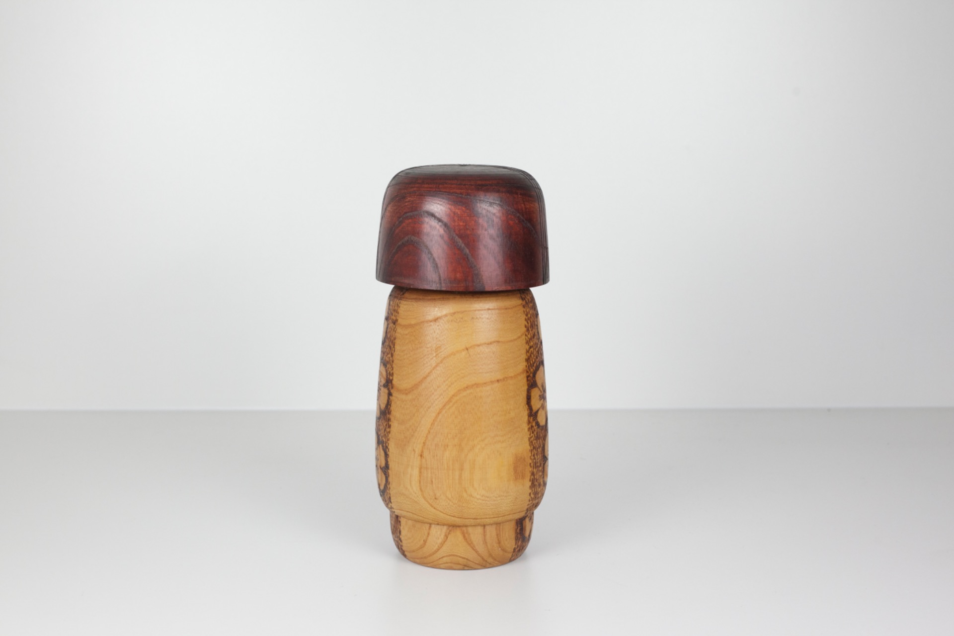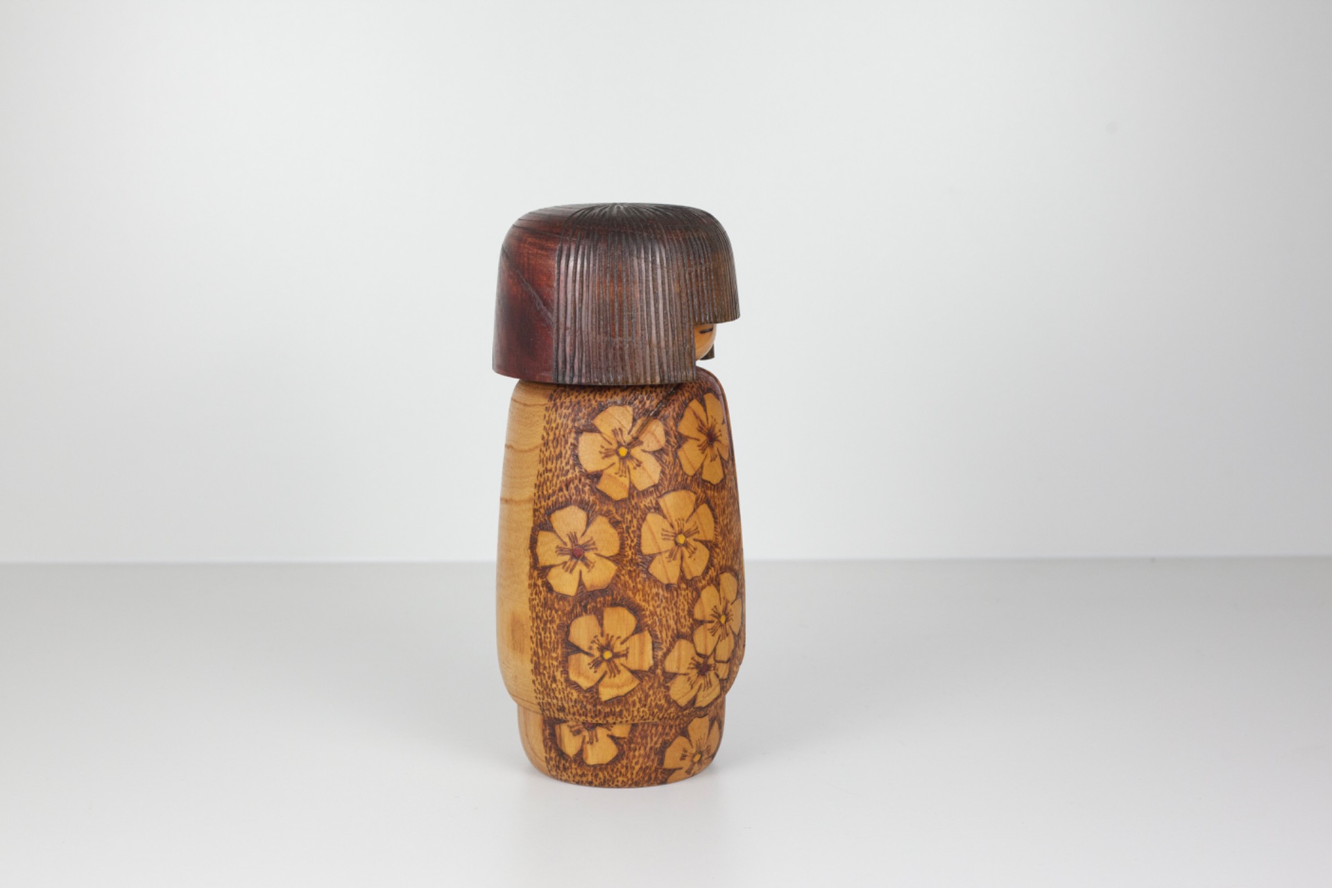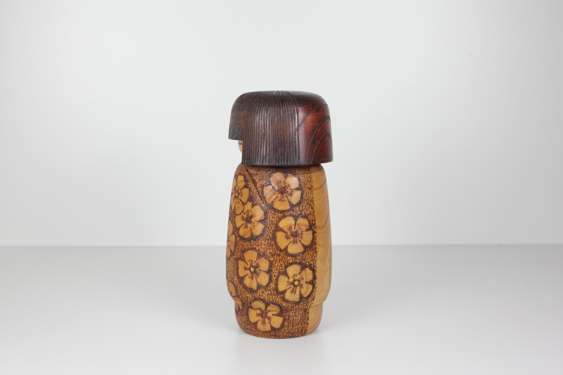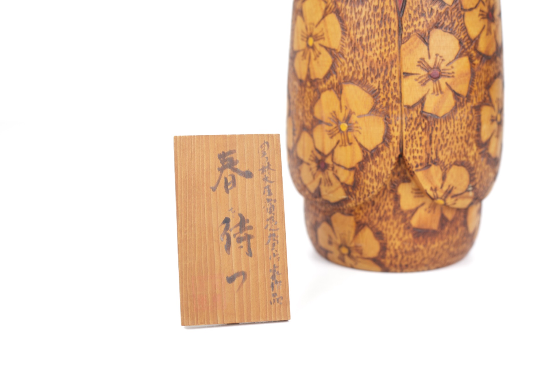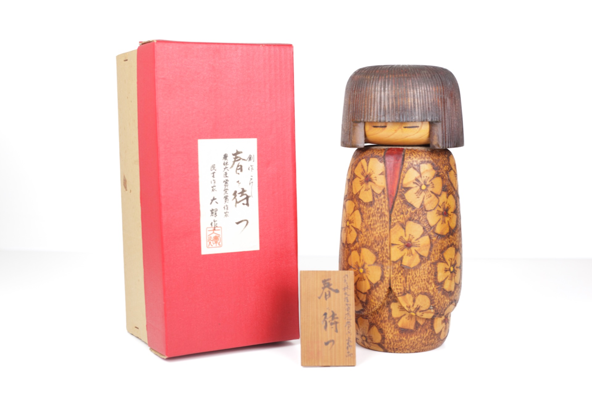 This Kokeshi was created by Yoshio Otani (大谷良夫), a renowned Japanese artist within the sōsaku Kokeshi tradition. His work is known for combining natural wood tones with refined floral motifs that often reflect the changing seasons.