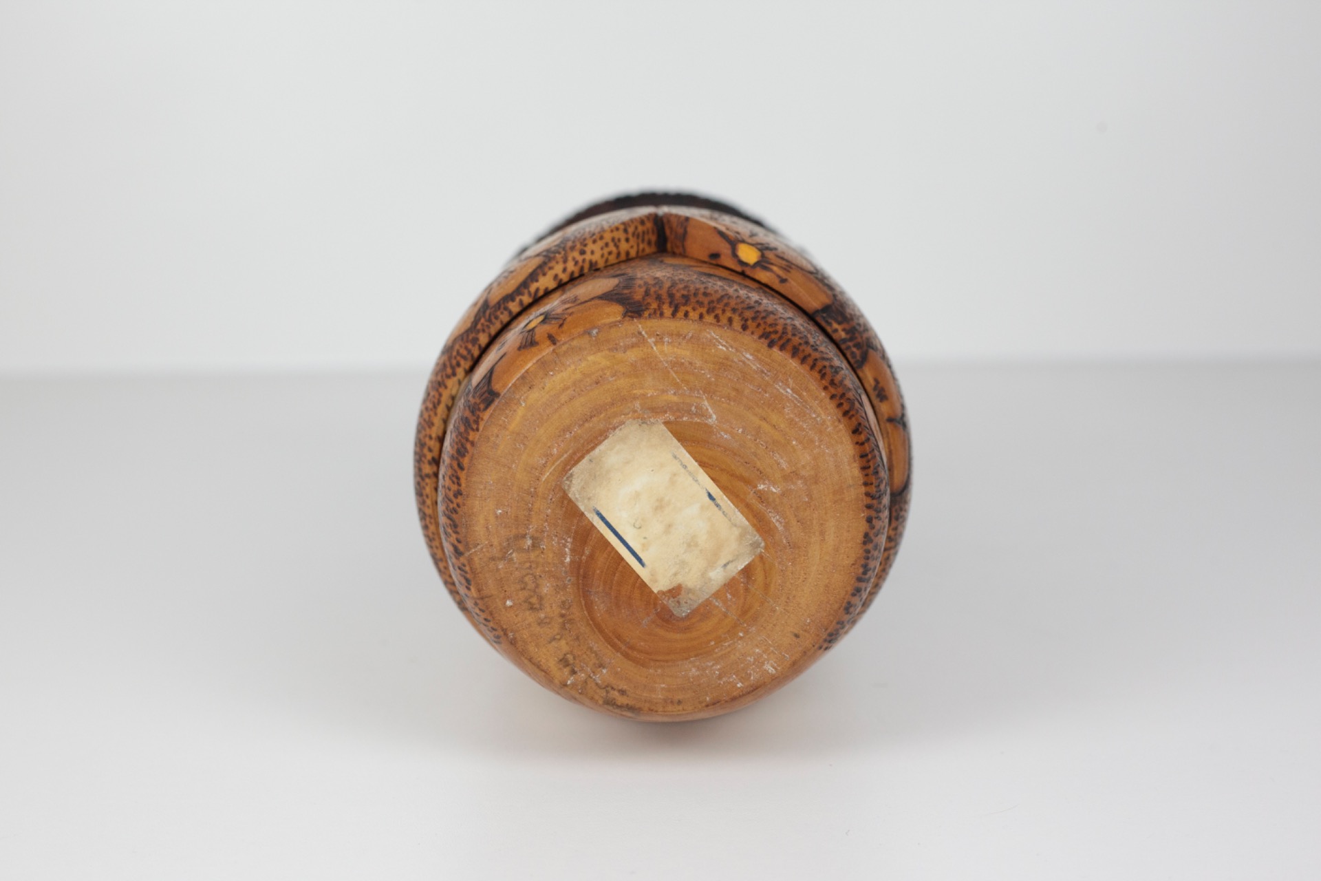 The form is simple and enclosed, drawing all attention to the surface. And that's where the richness lies. The flowers don't seem applied to the wood, but rather part of it.
