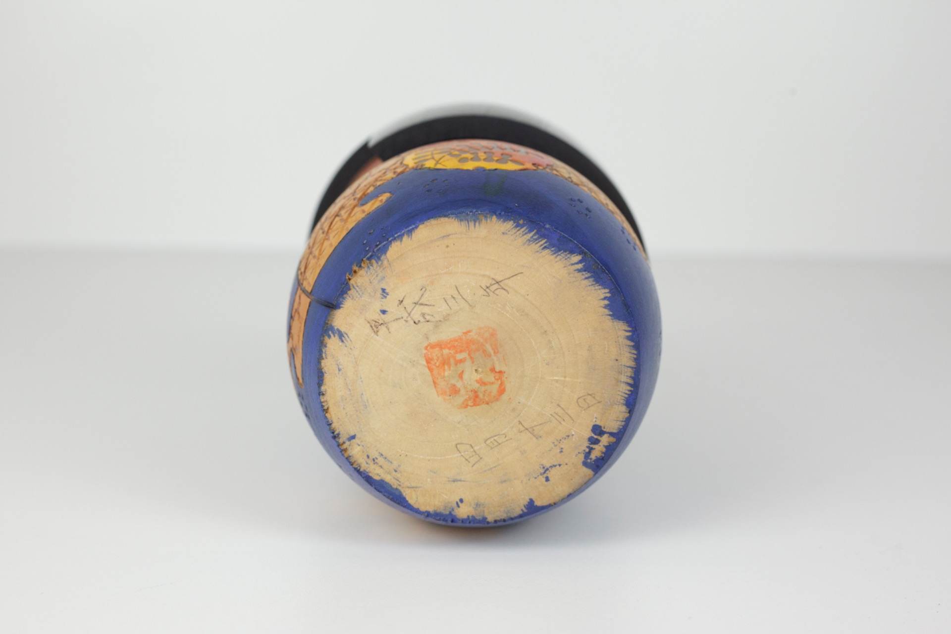 This Kokeshi was created by Takamizawa Kazuo (高見澤一男), a well-known name within the sōsaku Kokeshi tradition. His work combines traditional Japanese forms with a more playful, graphic approach.