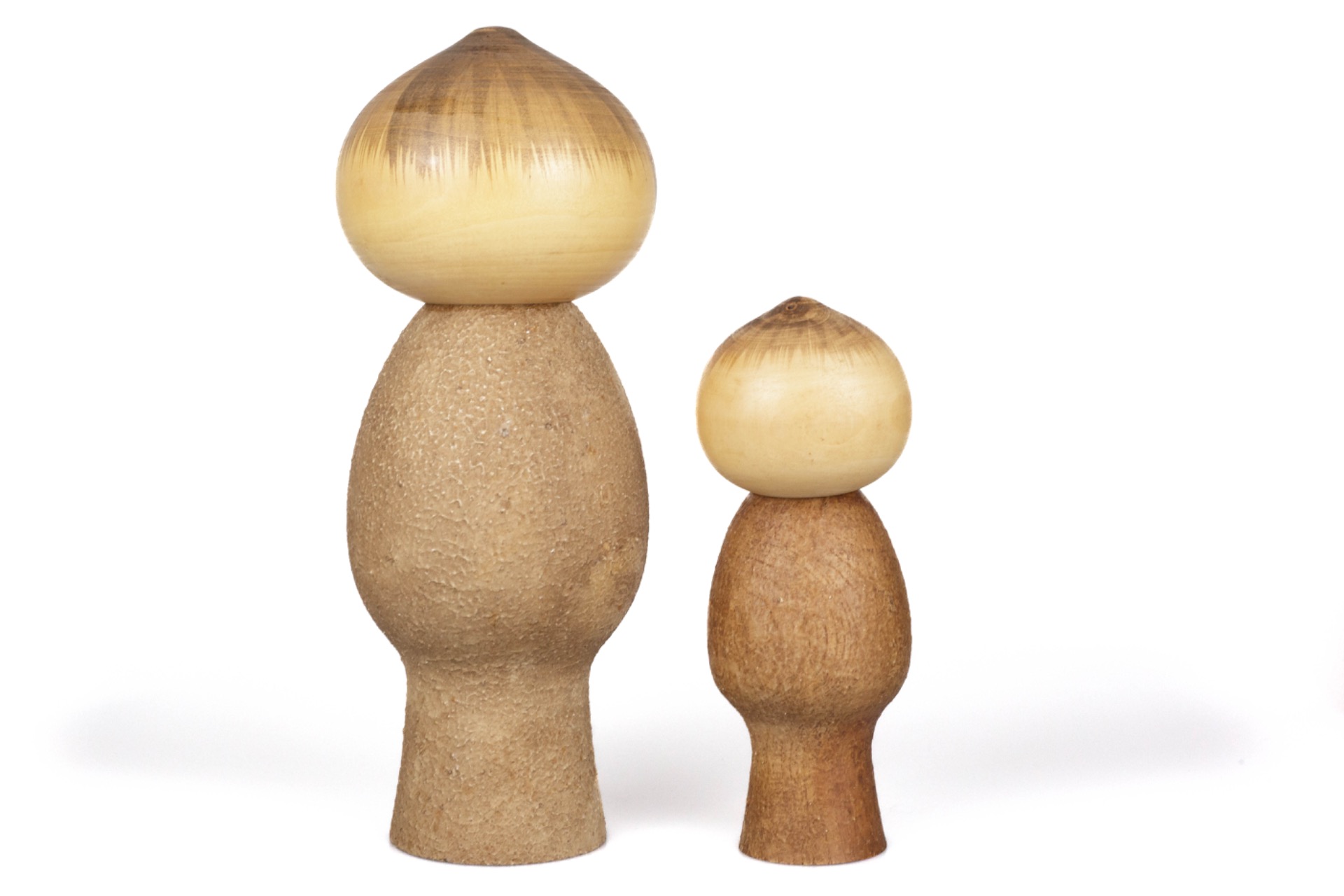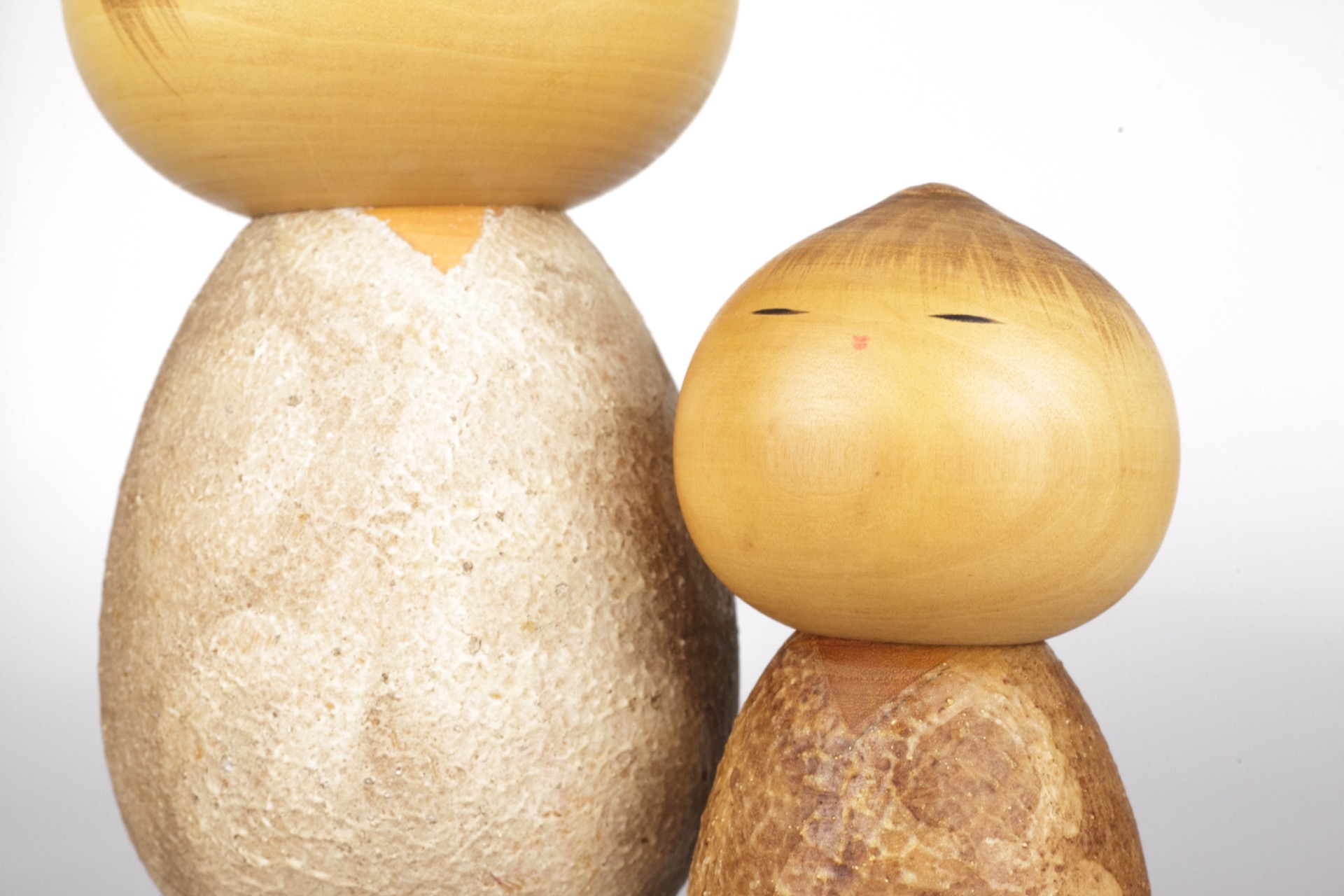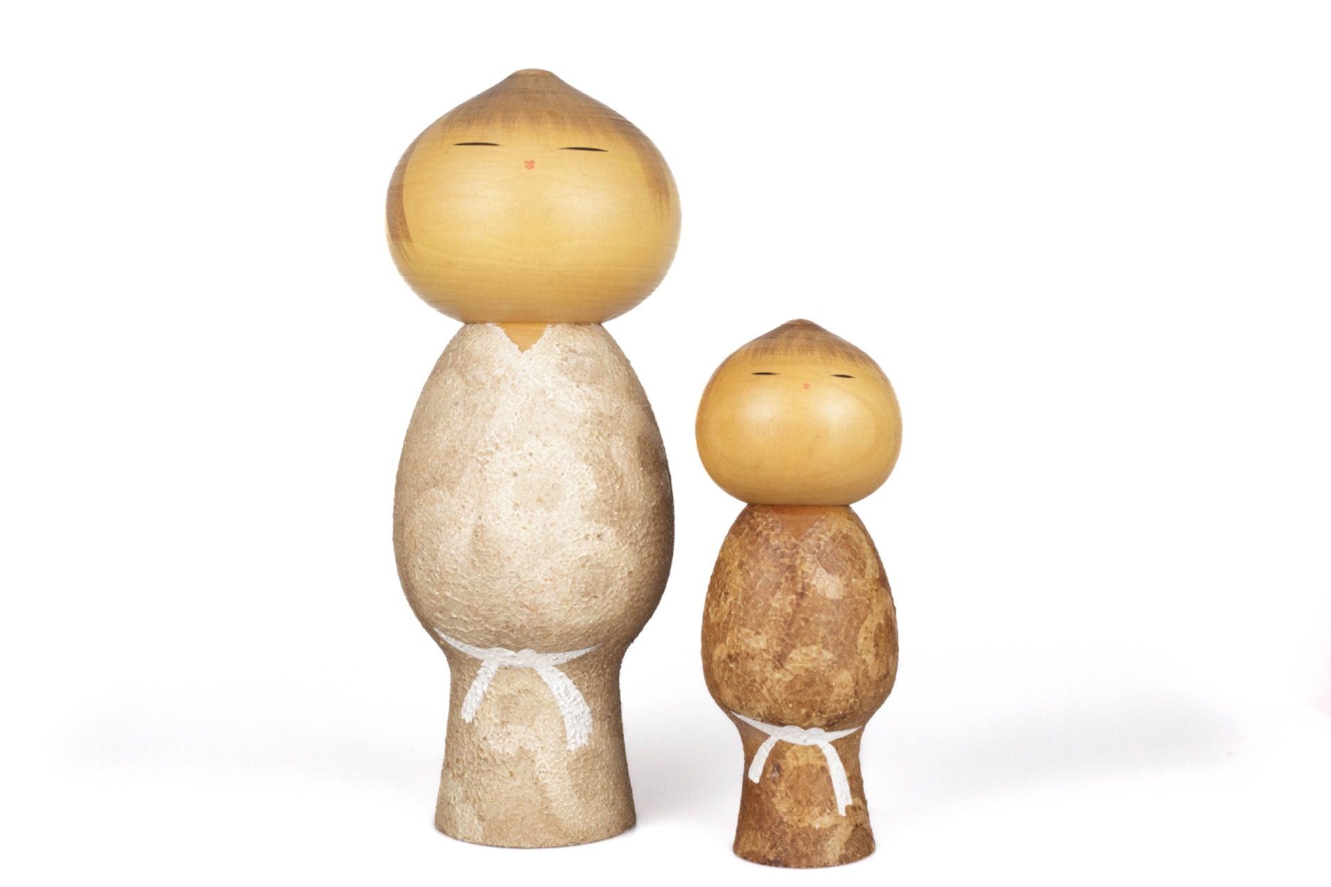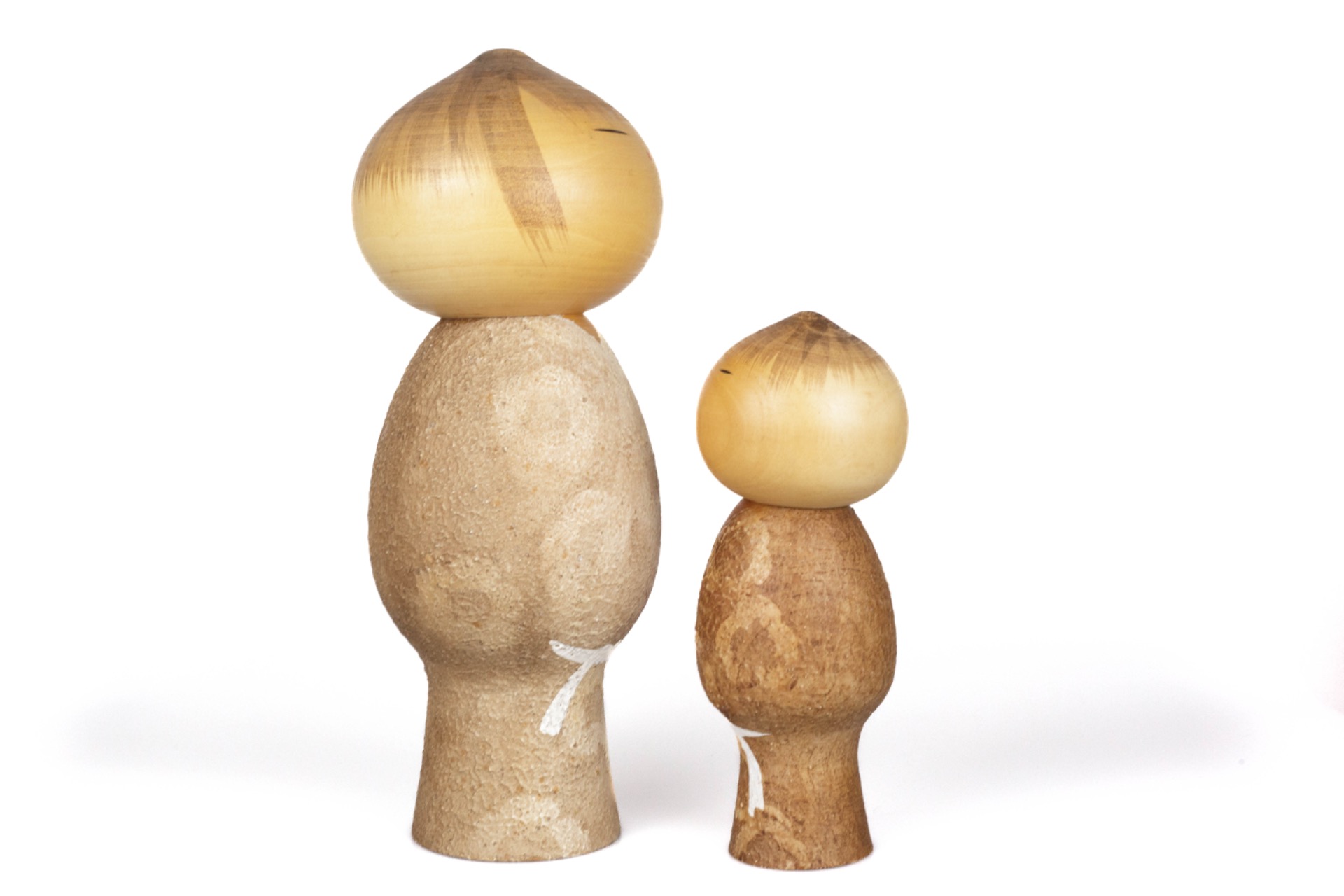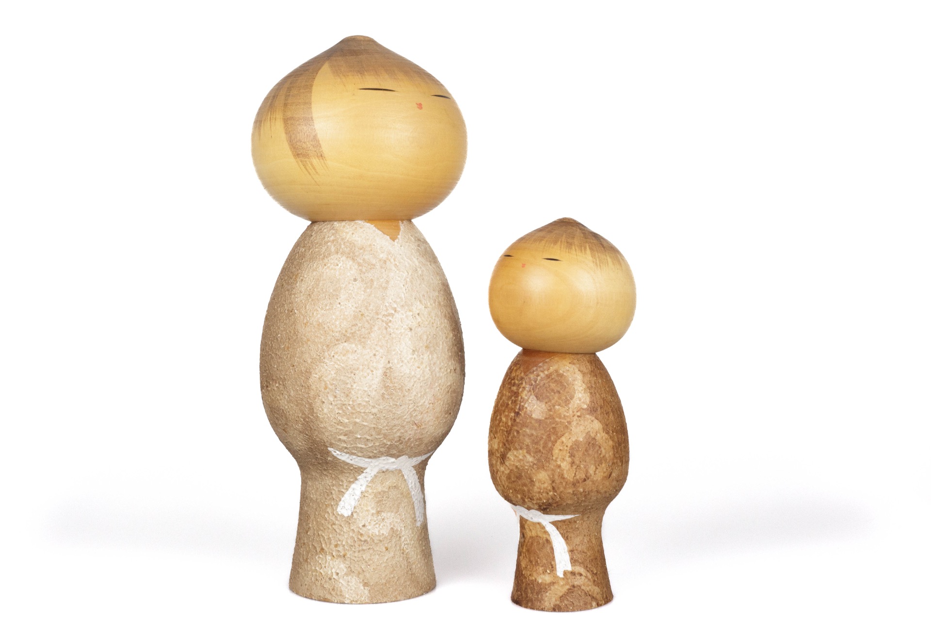 Deze sculpturale Kokeshi-set van Masao Watanabe (渡辺正雄) toont op sobere wijze de diepe band tussen ouder en kind. Met hun ingetogen uitstraling en ruwe textuur roepen deze figuren een gevoel van verbondenheid, rust en eenvoud op. De zachte rondingen en serene gezichtsuitdrukking maken deze set tot een krachtig voorbeeld van Wabi-Sabi – de Japanse schoonheid van imperfectie en vergankelijkheid.