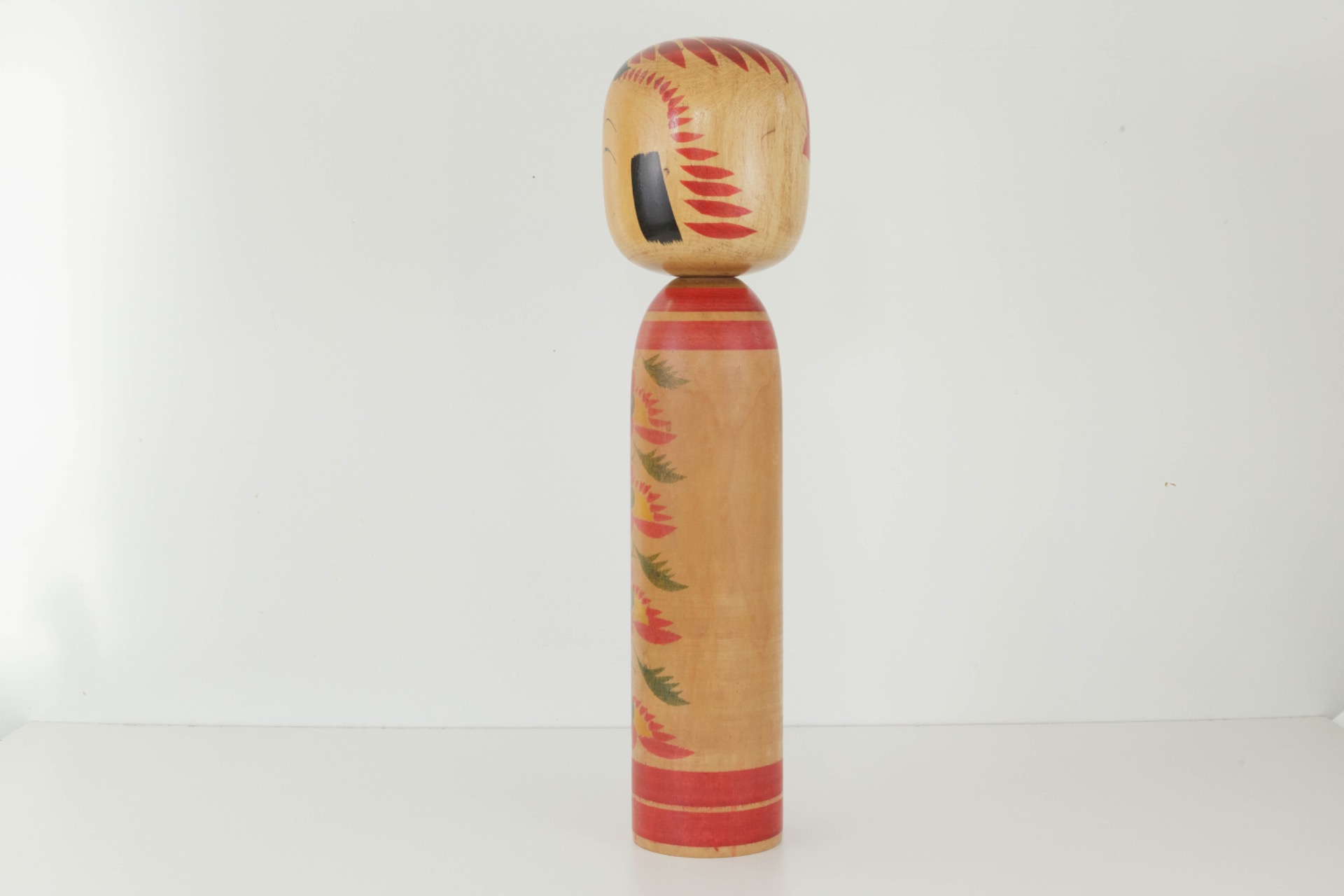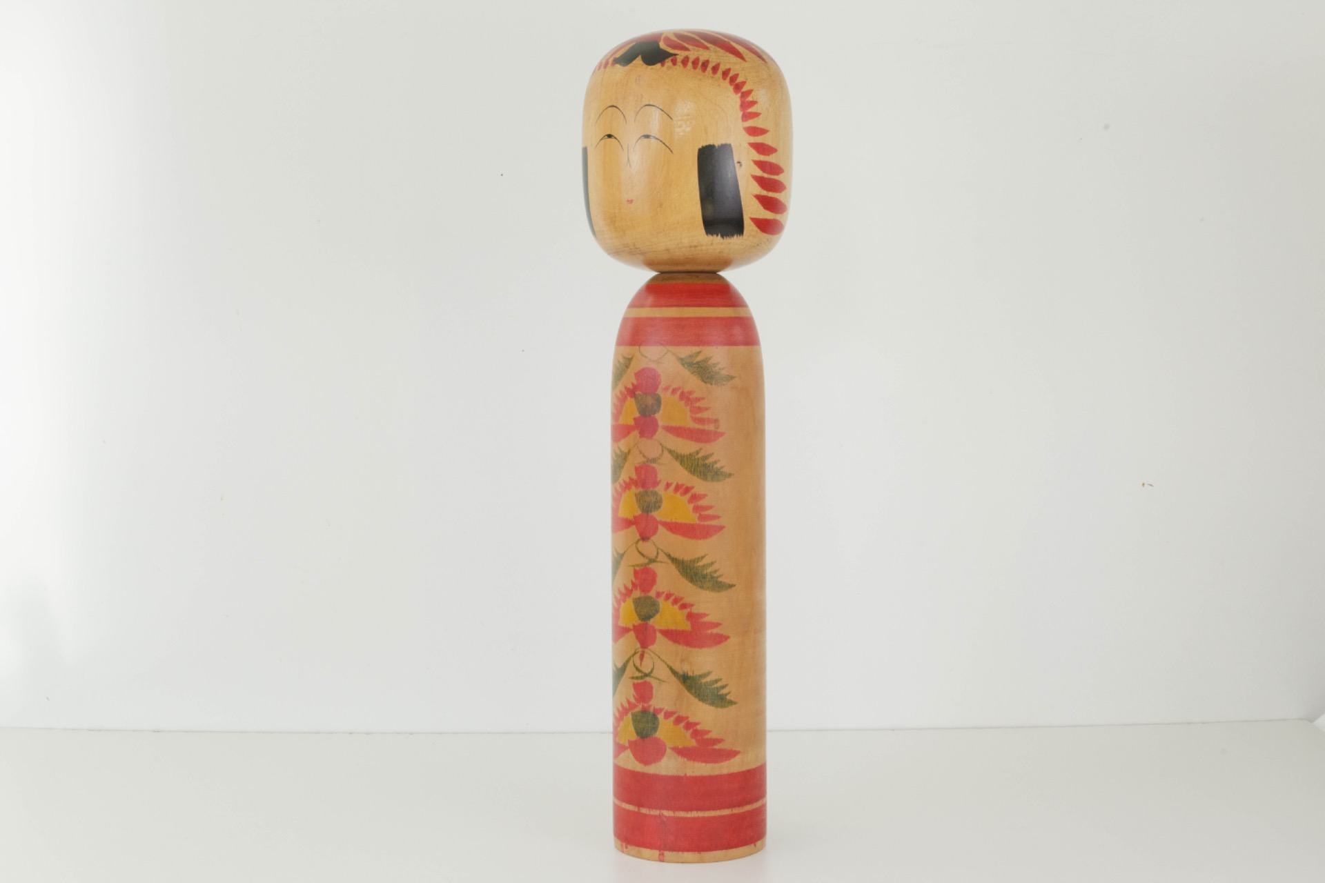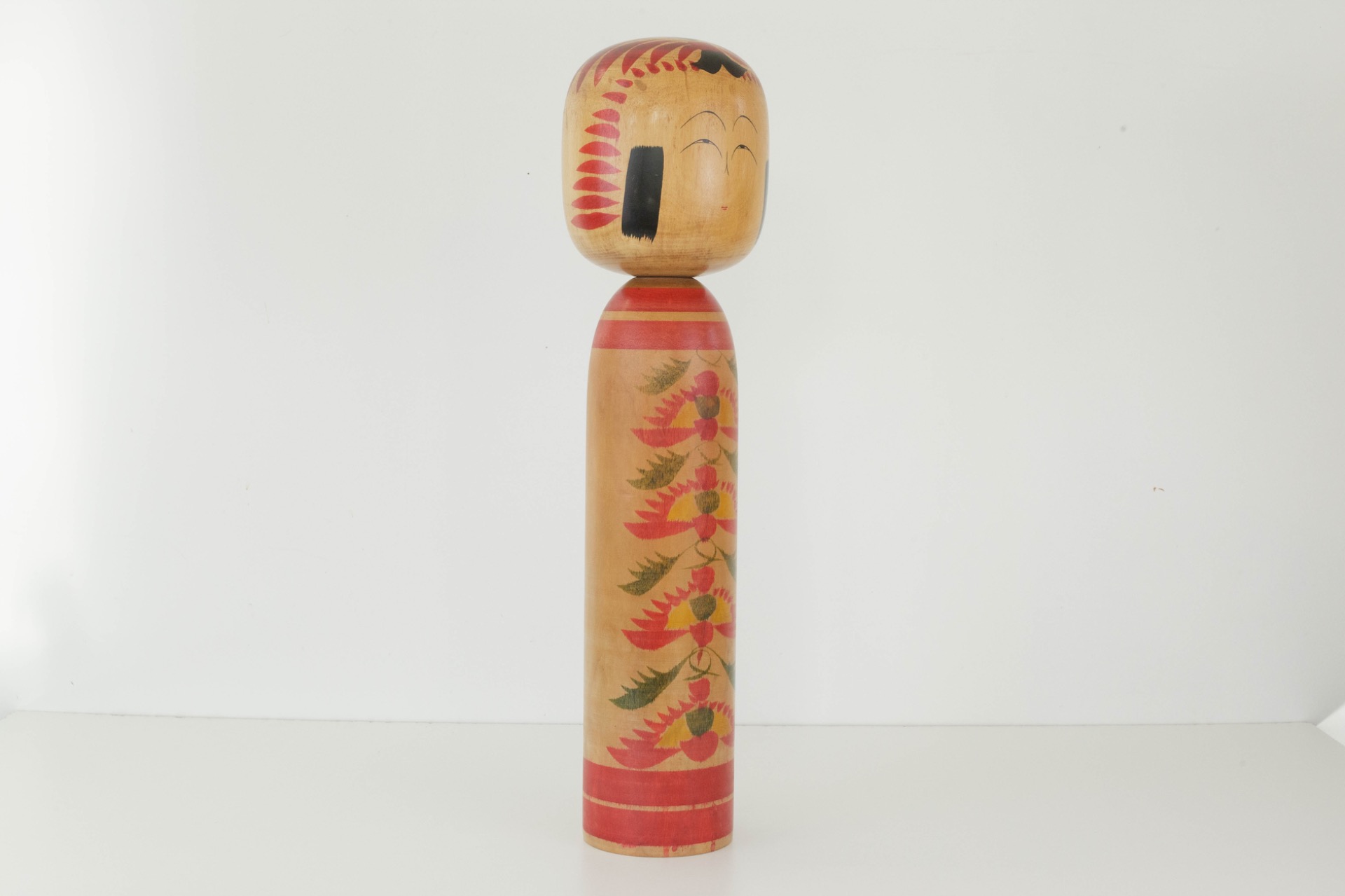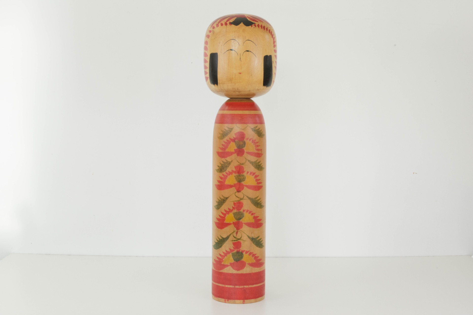 Deze uitzonderlijk grote traditionele Kokeshi is gesigneerd 長尾 (Nagao) en behoort tot de Tōgatta-stijl (遠刈田系), afkomstig uit de prefectuur Miyagi.