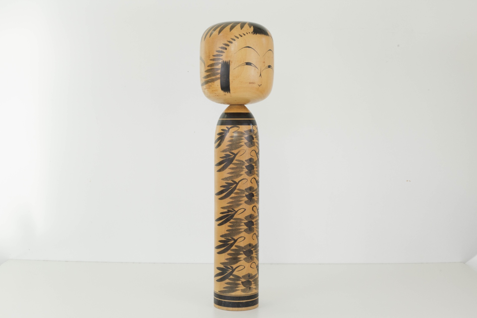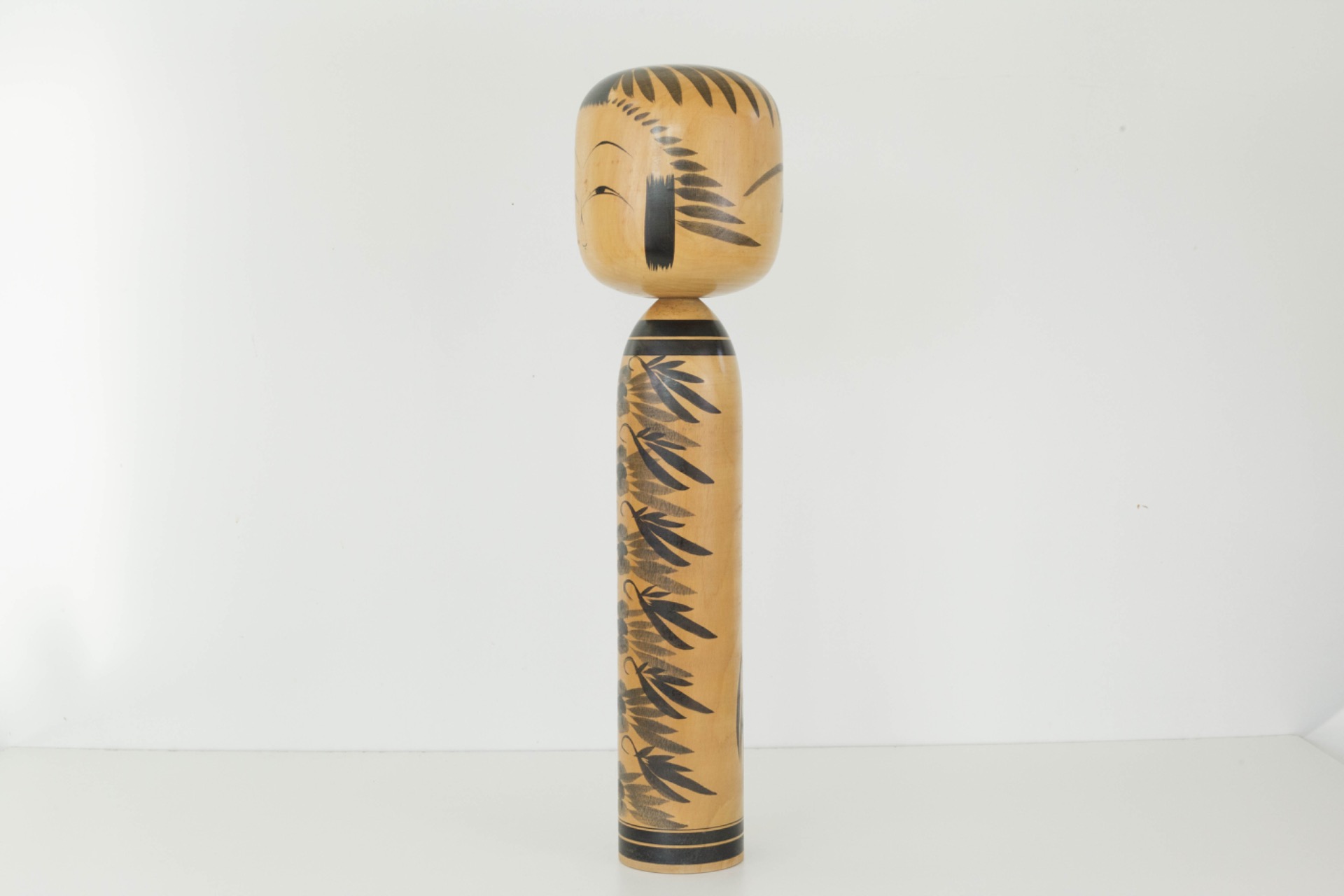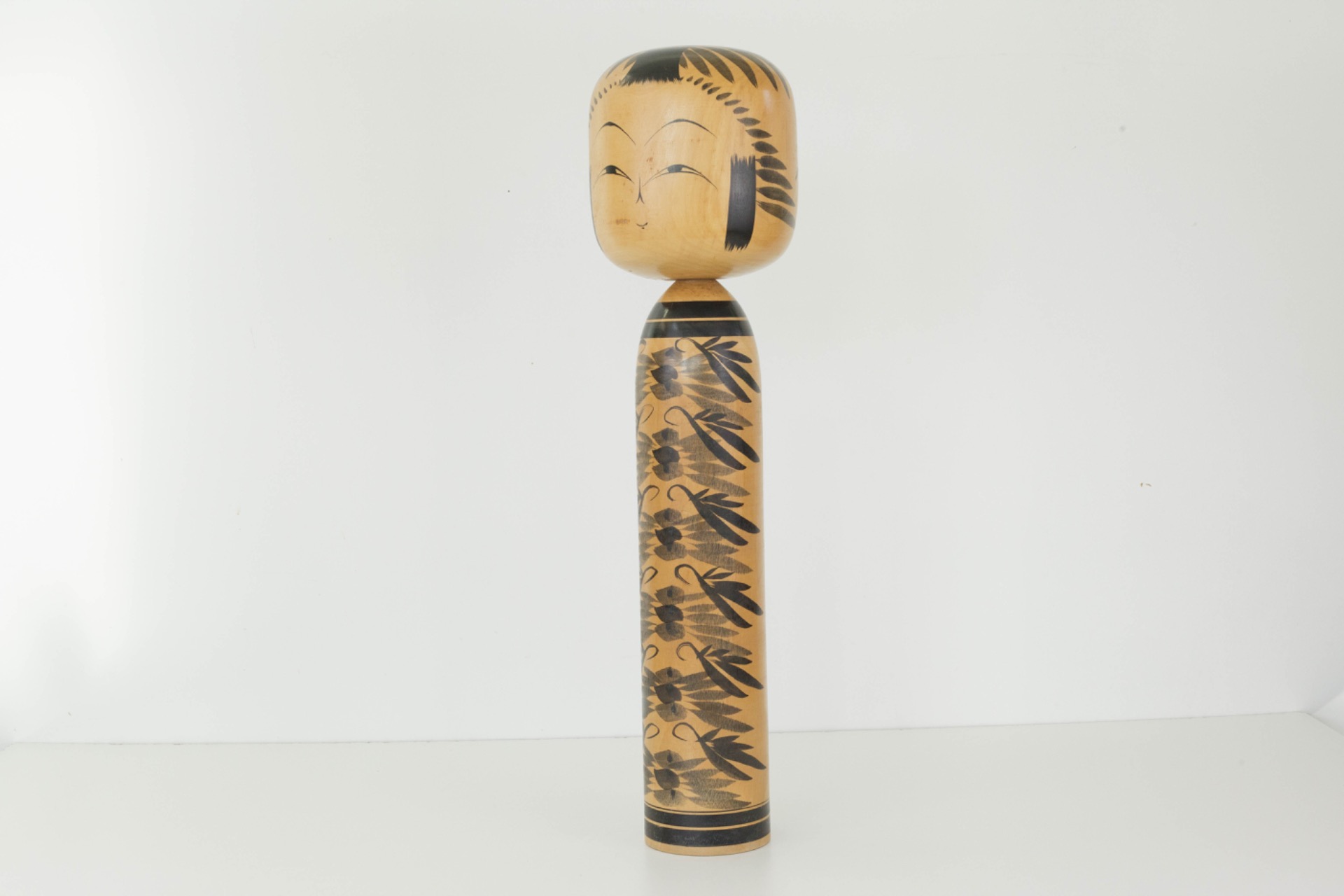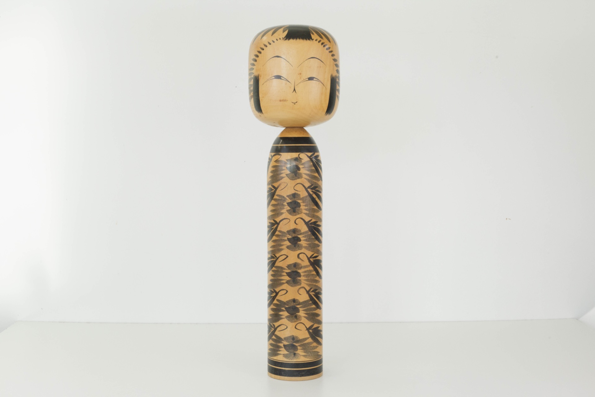 Een opvallend grote Kokeshi met een serene uitstraling en natuurlijke elegantie en een prachtig voorbeeld van Japans vakmanschap, dat evenveel rust als karakter in een interieur brengt.